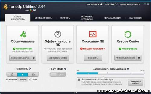 TuneUp Utilities 2014 - обновленный набор всевозможных утилит для настройки вашей системы. TuneUp Utilities позволит вам очищать диски от различного мусора, удалять из системного реестра неверные записи, управлять автозагрузкой, оптимизировать оперативную память, навсегда удалять файлы при помощи инструмента ”TuneUp Shredder” (он не позволит восстановить файлы даже с помощью специальных программ), изменять внешний вид Windows, а также многое другое. Все утилиты собраны в единую графическую оболочку. Данный пакет содержит в себе важные функции для конфигурации, оптимизации системы, обслуживания и очистки в современном графическом интерфейсе.