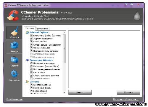 CCleaner - утилита для чистки мусора в операционной системе. В ходе своей работы CCleaner (Crap Cleaner) ищет и удаляет временные и неиспользуемые файлы. Сюда относятся: cookies, история посещения сайтов в IE, временные файлы Интернета, строки поиска, файлы Корзины и т.д.