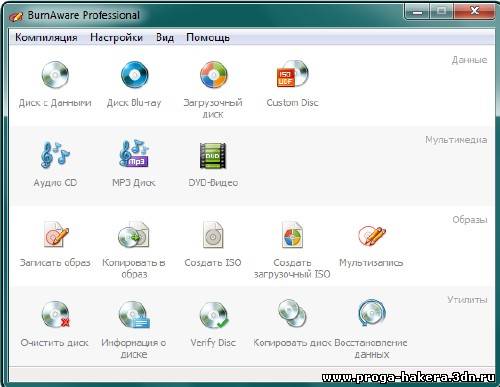 BurnAware Professional - обновлённая версия универсальной программы для записи и копирования различных дисков - CD, DVD, Blu-Ray и HD-DVD, а также копирования CD и DVD.