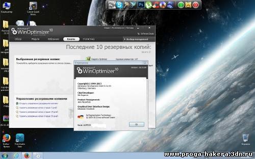 One-Click Optimizer: Быстрая оптимизация системы одним кликом. Drive Cleaner: Ищет и удаляет ненужные файлы. Registry Optimizer: Ищет и удаляет ненужные или повреждённые элементы реестра. Internet Cleaner: Удаляет следы работы в Интернете. Defrag 3: Дефрагментация жёстких дисков (Проактивная дефрагментация и дефрагментация во время загрузки) НОВИНКА Registry Defrag: Анализирует и дефрагментирует реестр Windows®. Обзор модулей для повышения эффективности: Service Manager: Оптимизация и управление установленными службами и их рейтингами. StartUp Tuner: Управление приложениями, которые запускаются при загрузке Windows®. Internet Tuner: Автоматическая или ручная оптимизация настроек оборудования системы и пропускной способности Вашего подключения к Интернету. Process Manager: Этот модуль предоставляет обзор всех запущенных в данный момент процессов. UnInstall Manager: Успешно удаляет приложения и неверные записи о них. Обзор модулей для настройки Windows: Tweaking: Обеспечивает доступ ко множеству скрытых параметров системы и позволяет детально настроить систему и часто используемые приложения. AntiSpy: Настройка интерфейсов и скрытых опций в Windows®, которые нежелательно передают информацию. File Associator: Управление форматами установленных файлов и восстановление или удаление неверных форматов. Context Menu Manager: Контекстные меню Проводника Windows® могут быть настроены под Ваши личные требования. Icon Saver: Расположение иконок может быть сохранено и, при необходимости, восстановлено. Обзор модулей для анализа системы: System Information: Полная и ясная информация об установленном аппаратном и программном обеспечении (ОС, ЦП, чипсет, диски и т.д.) DiskSpace Explorer: Анализирует группы файлов, например, аудио или видео файлы, и сообщает о том, сколько места на диске занимает та или иная группа. System Benchmark: Тестирование процессора и измерение производительности памяти. Результаты можно сравнивать с результатами других пользователей через Интернет. Disk Doctor: Проверка жёстких дисков на ошибки и восстановление повреждённых файлов. НОВИНКА HDD Inspector: Подробная информация и анализ параметров Ваших жёстких дисков. Обзор инструментов по работе с файлами: File Wiper: Безопасно удаляет файлы и папки навсегда. File Encrypter & Decrypter: Шифрует и дешифрует файлы и папки. File Splitter & Joiner: Разделяет большие файлы на маленькие части, которые, например, могут быть отравлены по почте и затем склеены назад. Undeleter: Восстанавливает случайно удалённые файлы. Модули управления резервными копиями и точной настройки: Backup Management: Управляет существующими резервными копиями. Tuning Assistant:: Помогает новым пользователям оптимизировать их систему. Taskplaner: Позволяет Вам планировать автоматическое выполнение задач в заданное время. Настройки: Здесь Вы можете настроить параметры программы и каждого её модуля.