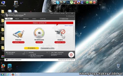 Возможности программы: Оптимизация и очистка ваших жестких дисков Очистка от временных интернет файлов Очистка системного реестра от мусора и неправильных записей Одно-кликовая оптимизация системы Простая и эффективная дефрагментация жестких дисков Управление автозапуском программ Управление запущенными процессами Оптимизация и увеличение скорости вашего интернет соединения Полное удаление файлов без возможности их восстановления Восстановление удаленных файлов Настройка параметров ОС Windows Изменение внешнего вида Windows с помощью Визуального Стилиста Сохранение и восстановление расположения иконок на вашем рабочем столе Просмотр дисковой и системной информации Прямой доступ ко всем функциям ОС Windows Разделение и соединение больших по размеру файлов Приятный пользовательский интерфейс