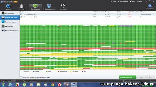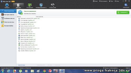 Wise Care 365 – программный пакет, предназначенный для оптимизации, настройки и очистки компьютера. Способен быстро и безопасно произвести очистку системного реестра, освободить место на диске, дефрагментировать реестр и жесткий диск, восстановить удаленные файлы, блокировать приложения путем установки пароля на запуск, оптимизировать оперативную память, редактировать список автозагружаемых приложений и многое другое. Имеются дополнительные опции скрытия и шифрования важных файлов или папок, оптимизация компьютера "в один клик" и работа по расписанию.