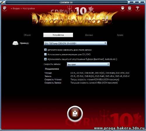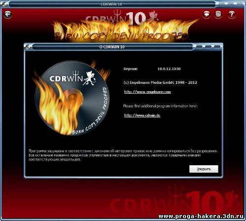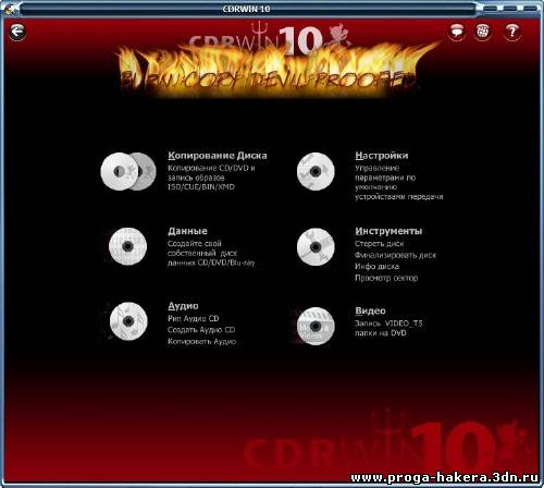 CDRWIN - прорамма для прожига Ваших CD-, - DVD - и / или Blu-ray-дисков с дьявольским новым и современным интерфейсом, который предлагает самые важные функции записи. Идеальный пакет для прожига дисков для новичков и профессионалов. CDRWIN оборудован современной технологией, обеспечивающей те качества, которые уже сделали его предшественников настолько успешными: надежность, скорость, всесторонние функциональные возможности и прямота, которая непосредственно приводит к успеху. Данное программное обеспечение можно использовать для записи аудио, видео и данных на CD / DVD носителях, а также для обработки CD-Text, WAV и MP3. Вы сможете делать резервные копии незащищенного видео на жесткий диск или на DVD носитель, интегрированная функция разбивки позволит разделить объёмные фильмы на несколько DVD без потери качества.