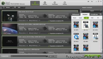 iSkysoft Video Converter Ultimate - позволяет конвертировать все типы видео файлов из одного формата в другой формат и извлекать аудио дорожки из видео. Данная программа может конвертировать WMV в MPEG, AVI в MPEG, WMV to MPEG и т.д. и поддерживает следующие видео форматы: MP4, MOV, 3GP, AVI, WMV, RM, MPEG, ASF и т.д. Также программа позволяет вам устанавливать яркость видео, контраст, насыщенность, подрезать видео, в пакетном режиме конвертировать видео файлы, и объединять различные файлы в один файл.