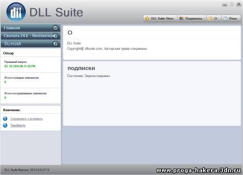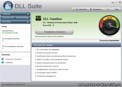 DLL Suite позволяет поддерживать в актуальном состоянии весь набор необходимых динамических библиотек DLL в системах Windows. Благодаря встроенному инструментарию, приложение может автоматически скачивать из сети интернет и устанавливать в систему отсутствующие и поврежденные файлы библиотек. DLL Suite 2013 дает возможность исправить "ошибки отсутствующих .dll", восстанавливать .sys файлы, отсутствие или неисправность которых вызывают Синий Экран Смерти, удалять .еxe вирусы.