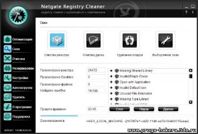 NETGATE Registry Cleaner - это свежая версия мощной программы, которая направлена для исправления ошибок и оптимизации системного реестра Windows. Утилита легко и быстро удалит ненужный мусор и исправит ошибки в записях реестра, что выгодно скажется на общей стабильности, быстродействии и производительности вашей операционной системы.