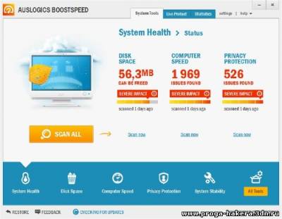AusLogics BoostSpeed - единственная программа, которая позволит Вам быстро и качественно произвести настройку Вашей системы на максимальную производительность. Встроенный System Adviser проверит настройки Вашей системы с помощью различных тестов и предложит Вам рекомендации по каждому тесту. Программа в реальном времени проверяет Вашу систему и если находит, что какой-то из параметров можно оптимизировать, то обязательно проинформирует Вас.