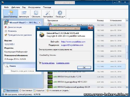 Установка: Final: Установить программу, не запускать, копировать с заменой UninstallTool.exe из папки x86(x64) в папку с установленной программой
