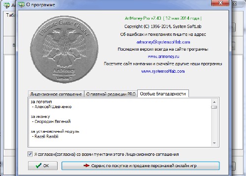 Разработчик: ArtMoney Год: 2014 Платформа: PC Версия: 7.43 Final Язык интерфейса: Русский / Мультиязычный Таблетка: Патч, кейген Тип файла: .rar Размер: 9,18 Мб