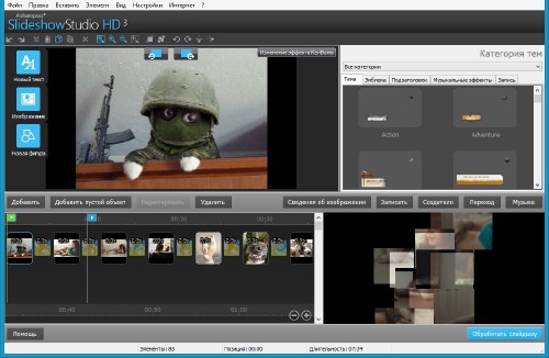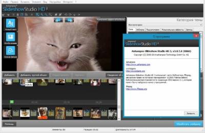 Ashampoo Slideshow Studio HD - программа, которая упрощает работу с цифровой фотографией. Вы сможете создавать захватывающие слайд-шоу при помощи одного щелчка мыши, добавлять музыку и анимированные переходы. Есть возможность записывать слайд-шоу на DVD носитель, чтобы просмотреть на домашнем DVD плеере. Возможно создавать слайд-шоу в формате HD, а затем загрузить его на YouTube или создать в MPEG2, MPEG4 и WMV форматах.