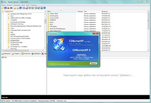Название программы: CDBurnerXP Версия программы: 4.5.4.4852 Год выхода: 2014 Официальный сайт: ссылка Язык интерфейса: Русский, Английский, и другие Лечение: Не требуется Тип файла: .rar Размер: 53,57 Мб