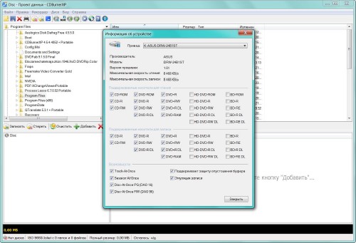 CDBurnerXP - программа для записи CD и DVD, включая Blu-Ray и HD-DVD. Пишет данные с жесткого диска и из ISO имиджей, записывает CD с данными и аудио-CD. Кроме этого, позволяет создавать загрузочные диски, переписывать аудиоCD на жесткий диск "на лету" в файлы MP3, OGG, WMA, WAV, а также сохранять образы CD в виде ISO-файлов. CDBurnerXP может работать как с обычными, так и с перезаписываемыми дисками и понимает "мультисессии".