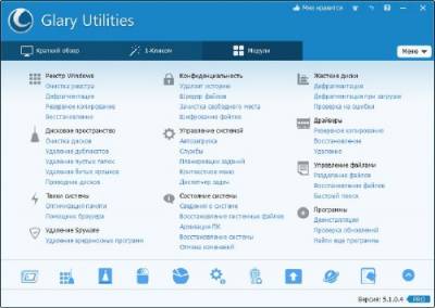 Glary Utilities - функциональный набор системных твикеров и утилит, для тонкой настройки, повышения общего уровня производительности и защиты ПК. Данное приложение позволяет пользователю избавиться от ненужных файлов, от устаревших регистрационных записей и истории интернет-активности, посредством установки различных плагинов, можно добиться полной совместимости данного приложения с более чем 45 различным программами.