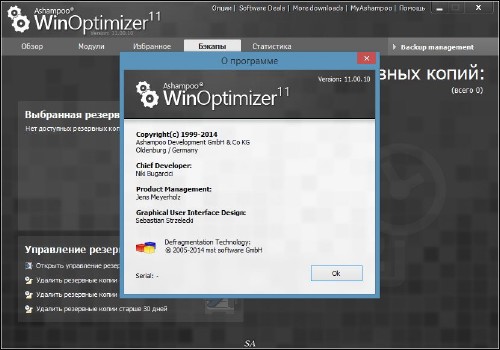 Модули управления резервными копиями и точной настройки: Backup Management: Управляет существующими резервными копиями. Tuning Assistant:: Помогает новым пользователям оптимизировать их систему. Taskplaner: Позволяет Вам планировать автоматическое выполнение задач в заданное время. Настройки: Здесь Вы можете настроить параметры программы и каждого её модуля.