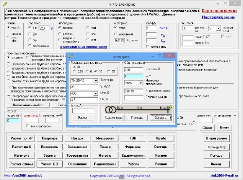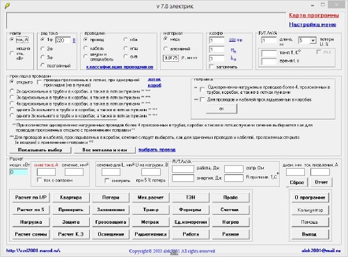 рассчитать мощность по 1ф/3ф току. рассчитать ток по 1ф/3ф мощности. по заданному сечению и условиям прокладки определить ток и мощность. рассчитать потери напряжения. рассчитать токи короткого замыкания. определить диаметр провода, кабеля, шнура и спецкабеля. определить сечение провода, кабеля, шнура и спецкабеля.